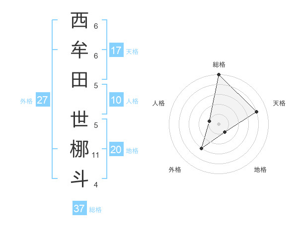 西牟田 世梛斗さんを姓名の画数から五運を鑑定