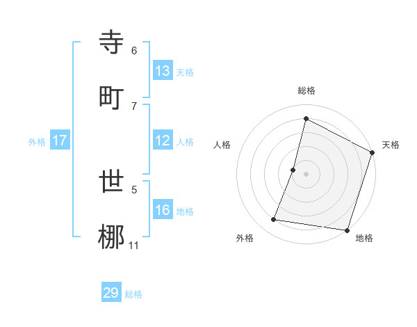 寺町 世梛さんを姓名の画数から五運を鑑定