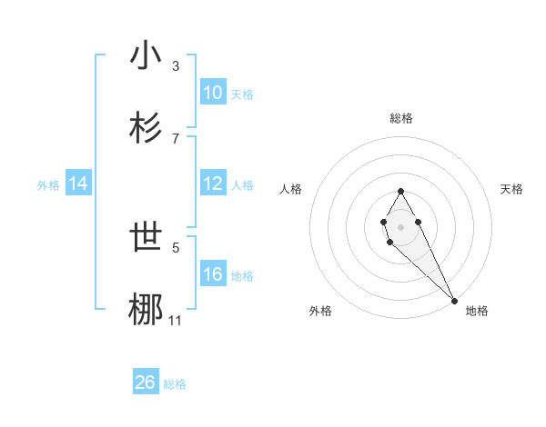 小杉 世梛さんを姓名の画数から五運を鑑定