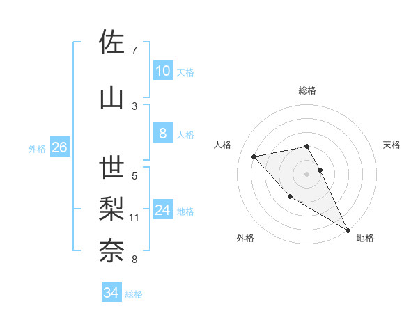 佐山 世梨奈さんを姓名の画数から五運を鑑定