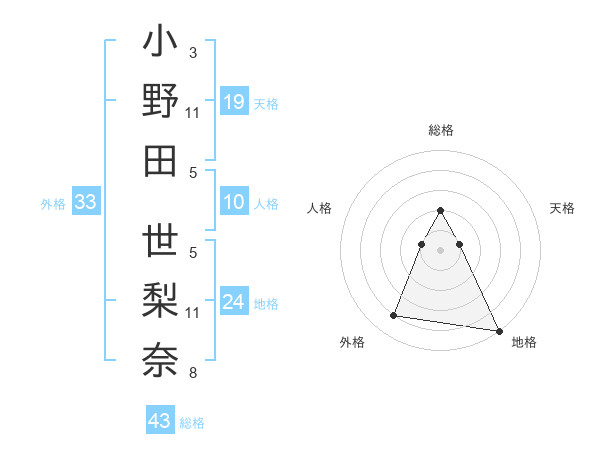小野田 世梨奈さんの地格は24画の5点!