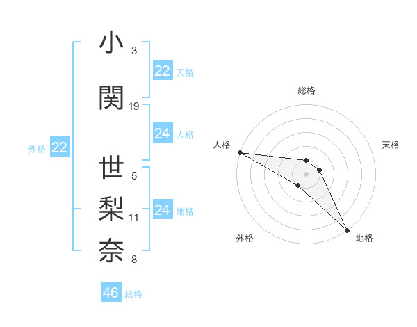 小関 世梨奈さんを姓名の画数から五運を鑑定