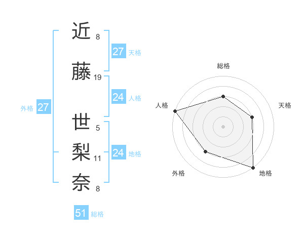 近藤 世梨奈さんを姓名の画数から五運を鑑定