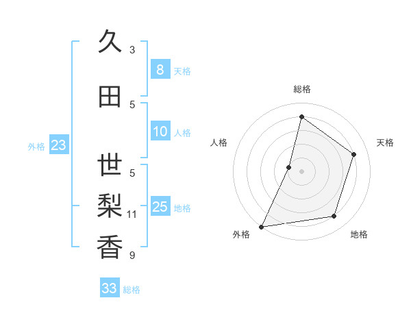 久田 世梨香さんを姓名の画数から五運を鑑定