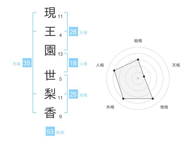 現王園 世梨香さんの総格は53画の3点!