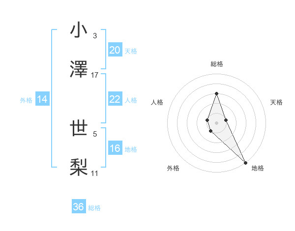小澤 世梨さんを姓名の画数から五運を鑑定