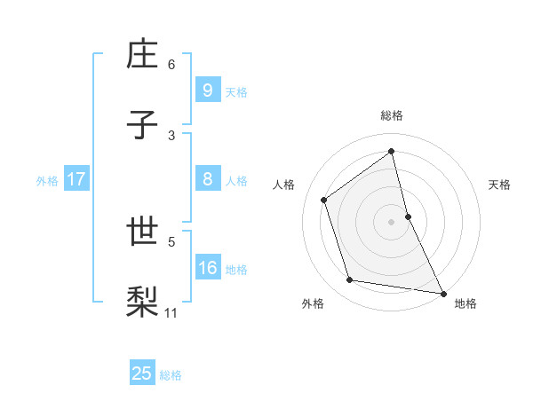 庄子 世梨さんの総格は25画の4点!