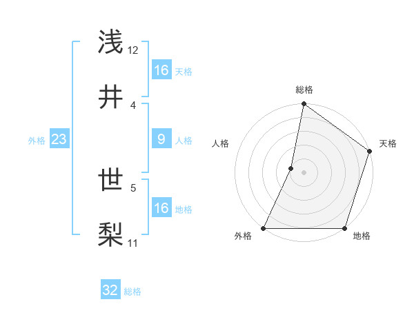 浅井 世梨さんの天格は16画の5点!