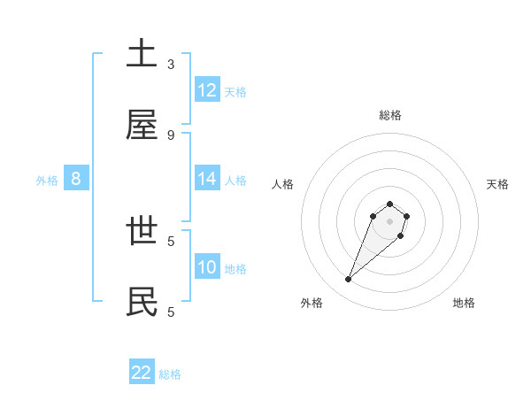 土屋 世民さんの総格は22画の1点!