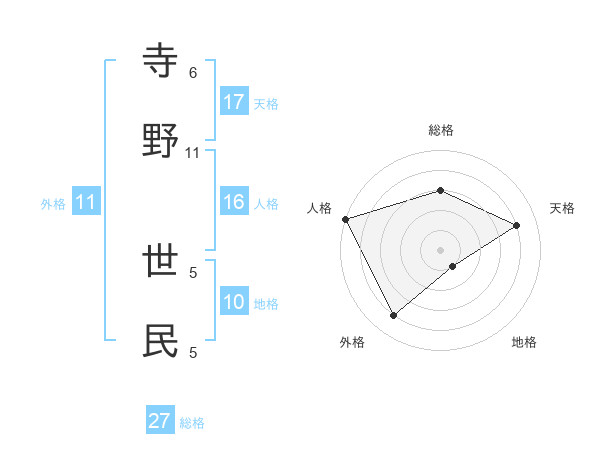 寺野 世民さんの外格は11画の4点!
