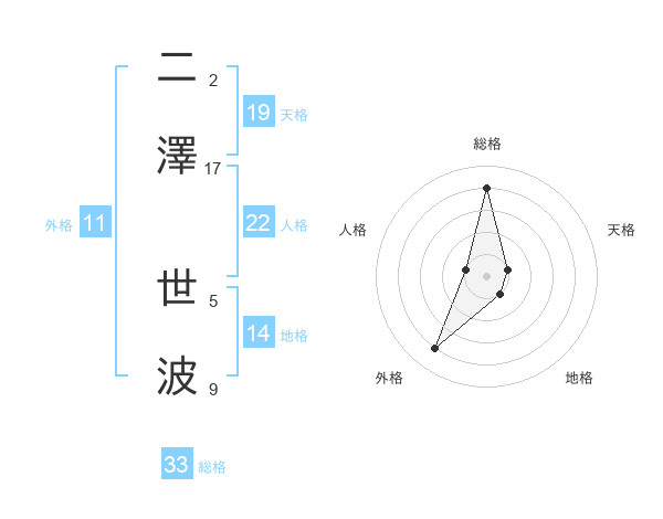 二澤 世波さんの天格は19画の1点!