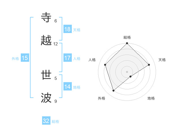 寺越 世波さんの総格は32画の5点!