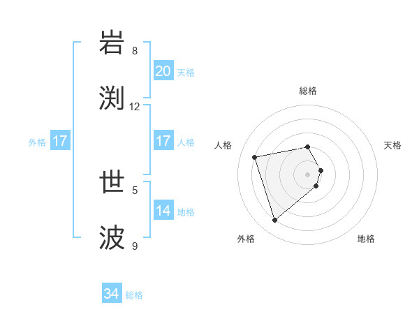 岩渕 世波さんの総格は34画の2点!