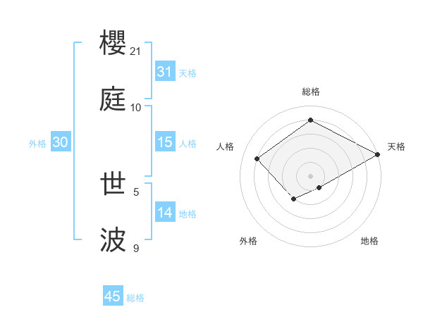 櫻庭 世波さんの総格は45画の4点!