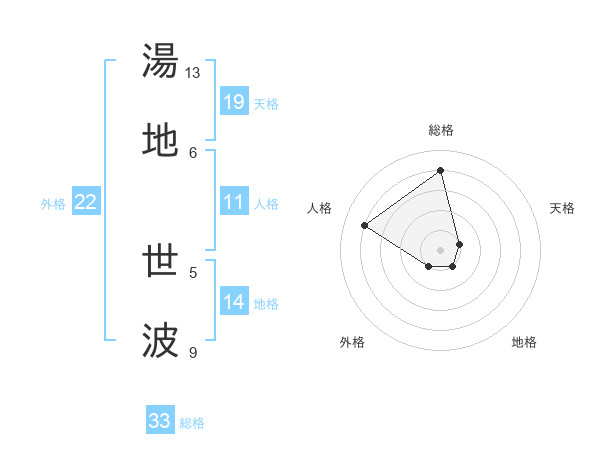 湯地 世波さんの総格は33画の4点!