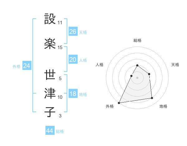 設楽 世津子さんを姓名の画数から五運を鑑定