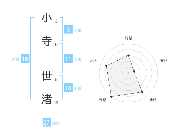 小寺 世渚さんを姓名の画数から五運を鑑定