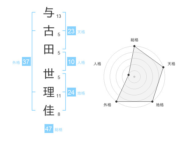 与古田 世理佳さんを姓名の画数から五運を鑑定