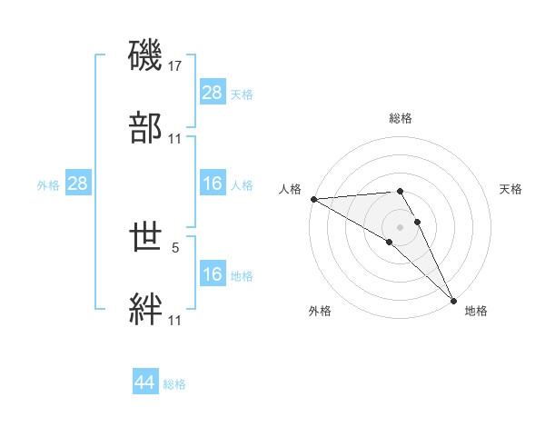 磯部 世絆さんの総格は44画の2点!