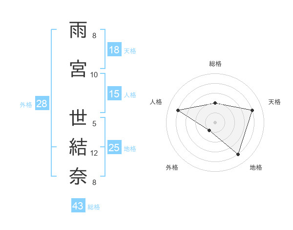 雨宮 世結奈さんを姓名の画数から五運を鑑定
