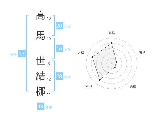 高馬 世結梛さんを姓名の画数から五運を鑑定