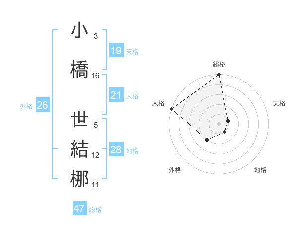 小橋 世結梛さんを姓名の画数から五運を鑑定