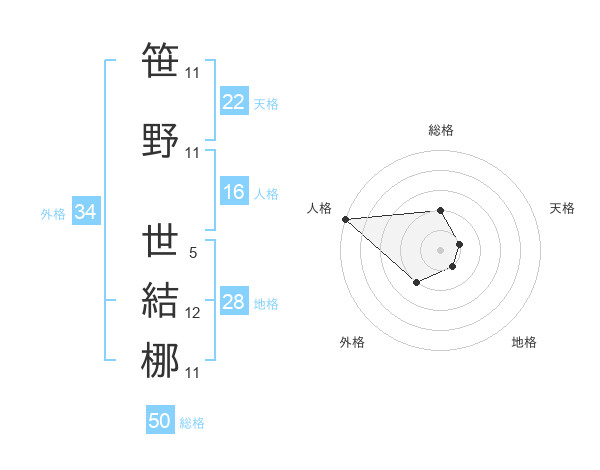 笹野 世結梛さんを姓名の画数から五運を鑑定