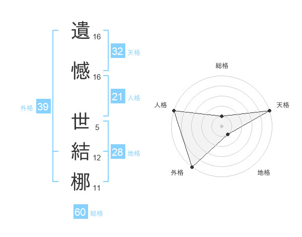 遺憾 世結梛さんを姓名の画数から五運を鑑定