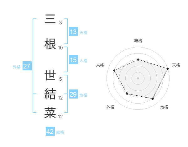 三根 世結菜さんを姓名の画数から五運を鑑定