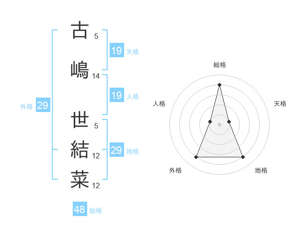 古嶋 世結菜さんの総格は48画の4点!
