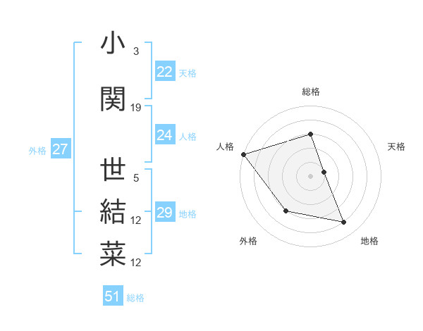 小関 世結菜さんを姓名の画数から五運を鑑定