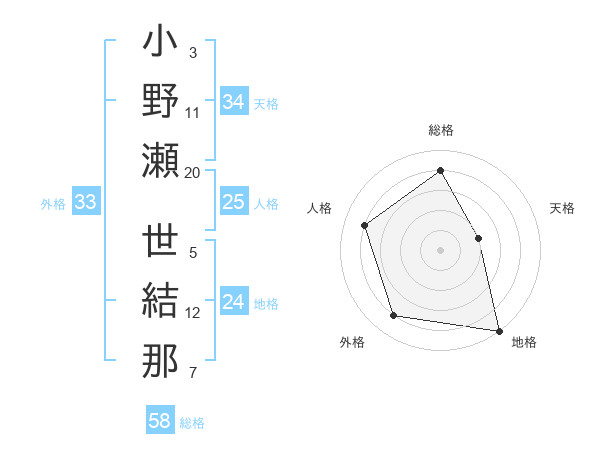小野瀬 世結那さんを姓名の画数から五運を鑑定