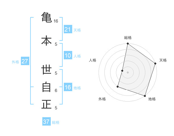 亀本 世自正さんの天格は21画の5点!