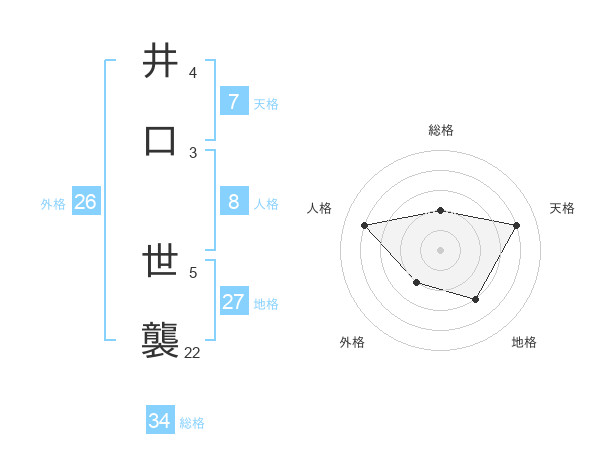 井口 世襲さんの総格は34画の2点!