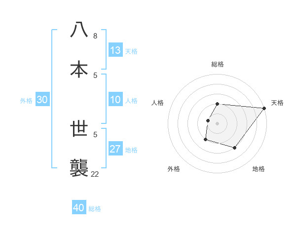 八本 世襲さんの天格は13画の5点!