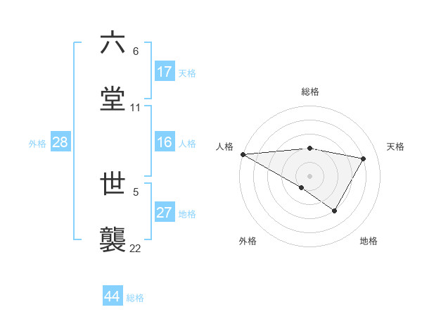 六堂 世襲さんを姓名の画数から五運を鑑定
