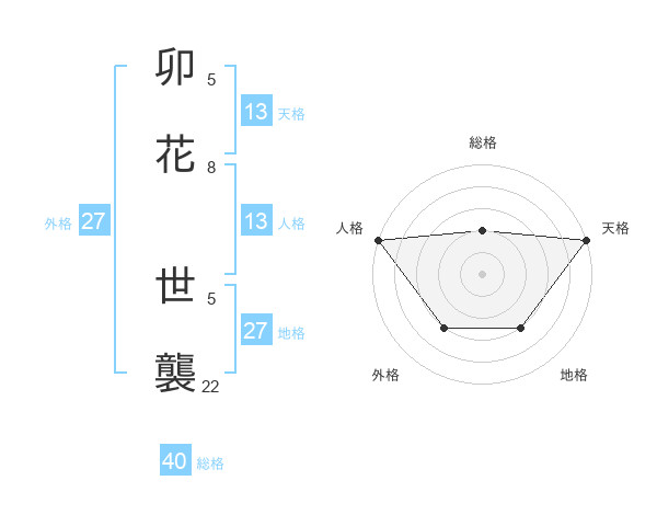 卯花 世襲さんを姓名の画数から五運を鑑定