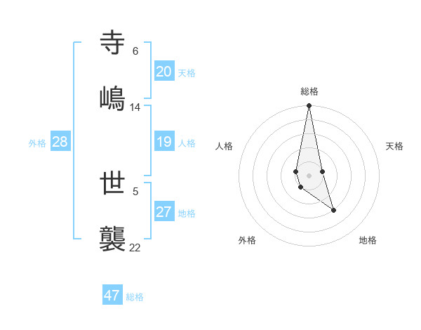 寺嶋 世襲さんの外格は28画の1点!