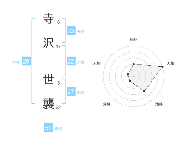 寺沢 世襲さんの総格は50画の2点!