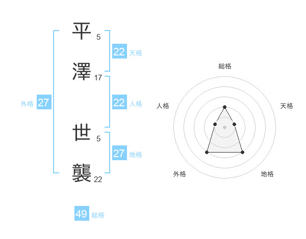 平澤 世襲さんの地格は27画の3点!