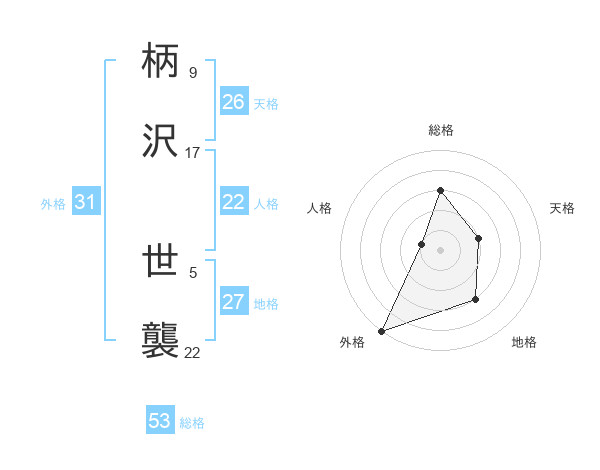 柄沢 世襲さんを姓名の画数から五運を鑑定
