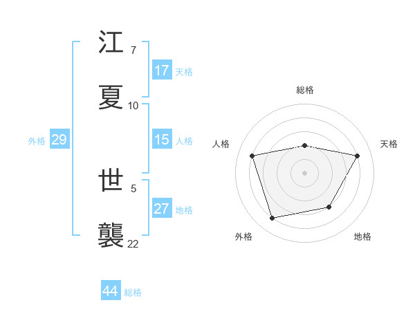 江夏 世襲さんの総格は44画の2点!
