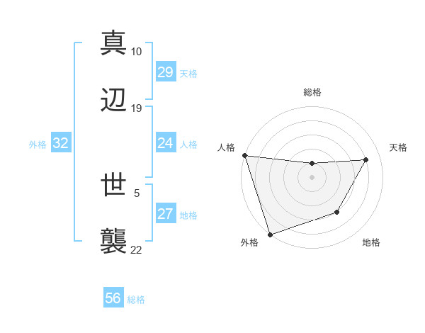 真辺 世襲さんを姓名の画数から五運を鑑定
