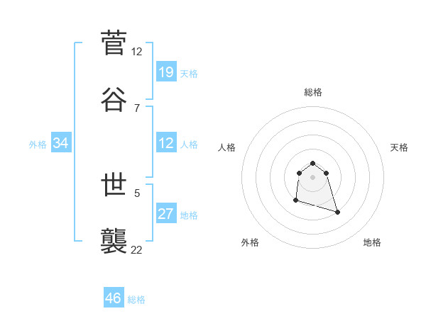 菅谷 世襲さんの総格は46画の1点!