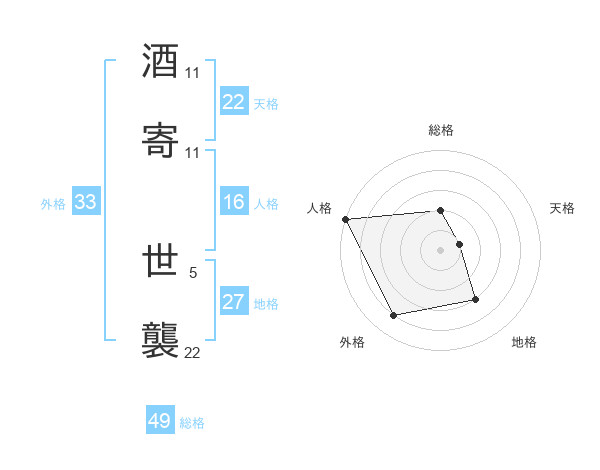 酒寄 世襲さんの外格は33画の4点!