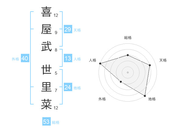 喜屋武 世里菜さんを姓名の画数から五運を鑑定