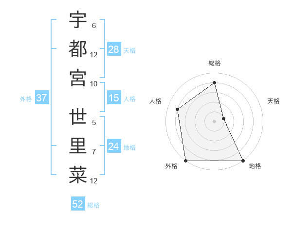 宇都宮 世里菜さんを姓名の画数から五運を鑑定