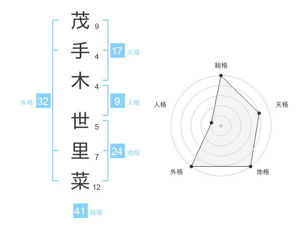 茂手木 世里菜さんを姓名の画数から五運を鑑定