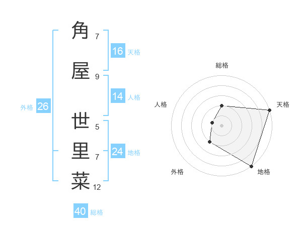 角屋 世里菜さんを姓名の画数から五運を鑑定