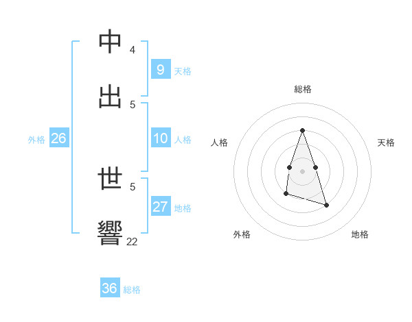 中出 世響さんの総格は36画の3点!